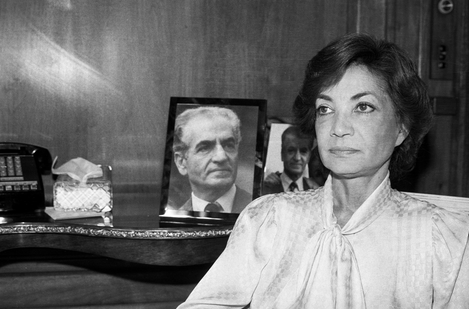 Ashraf fotografada no seu apartamento em Nova Iorque, em Abril de 1980. Por trás, a fotografia do irmão MAURICE MAUREL/CORBISFRANCISCA GORJÃO HENRIQUES
