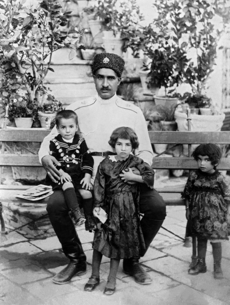 O Xá com os filhos em 1928: Mohammad Reza,a princesa Schams, ao centro, e Ashraf, à direita AFP
